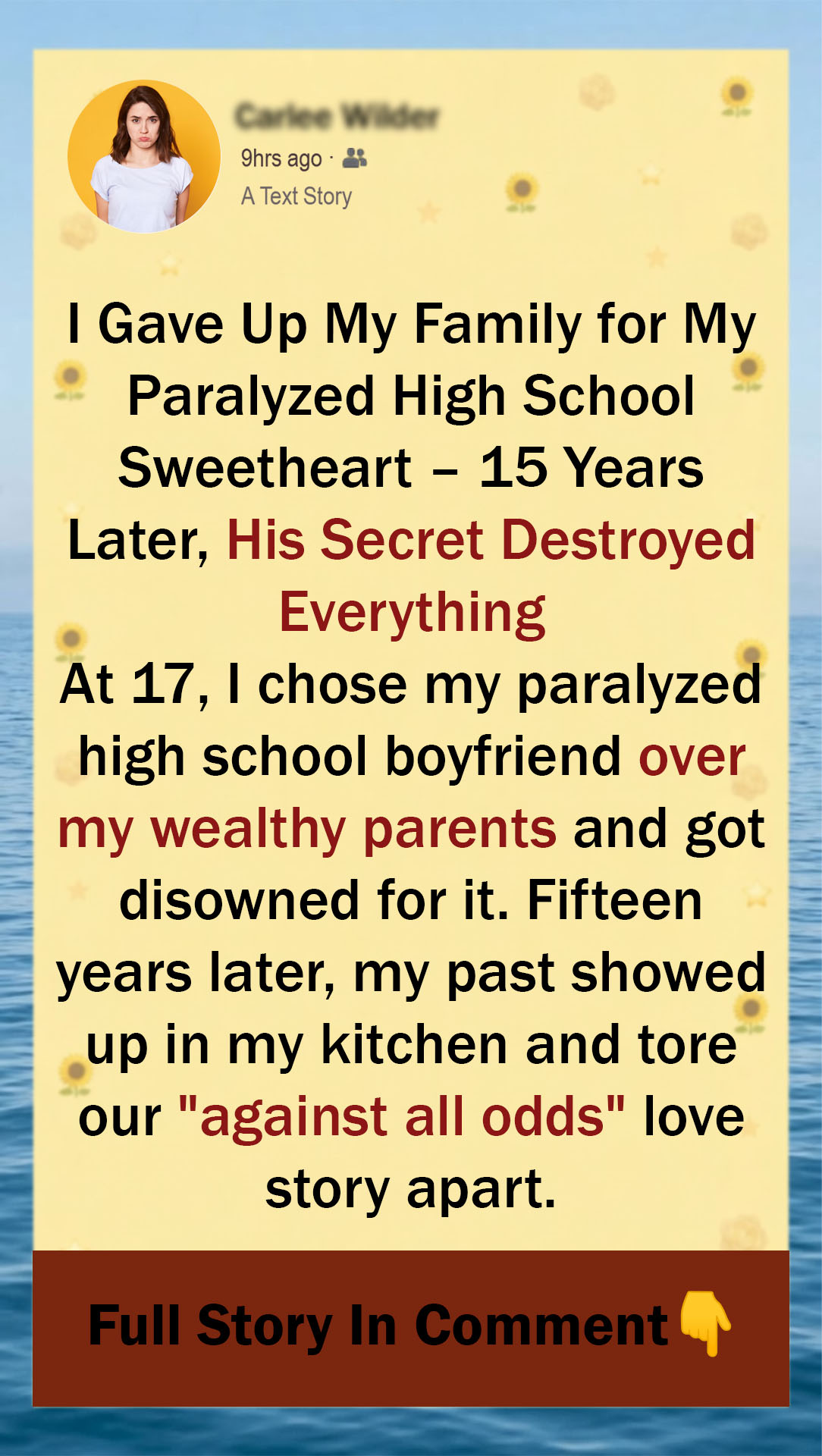 At 17, I chose my paralyzed high school boyfriend over my wealthy parents and got disowned for it. Fifteen years later, my past showed up in my kitchen and tore our “against all odds” love story apart.